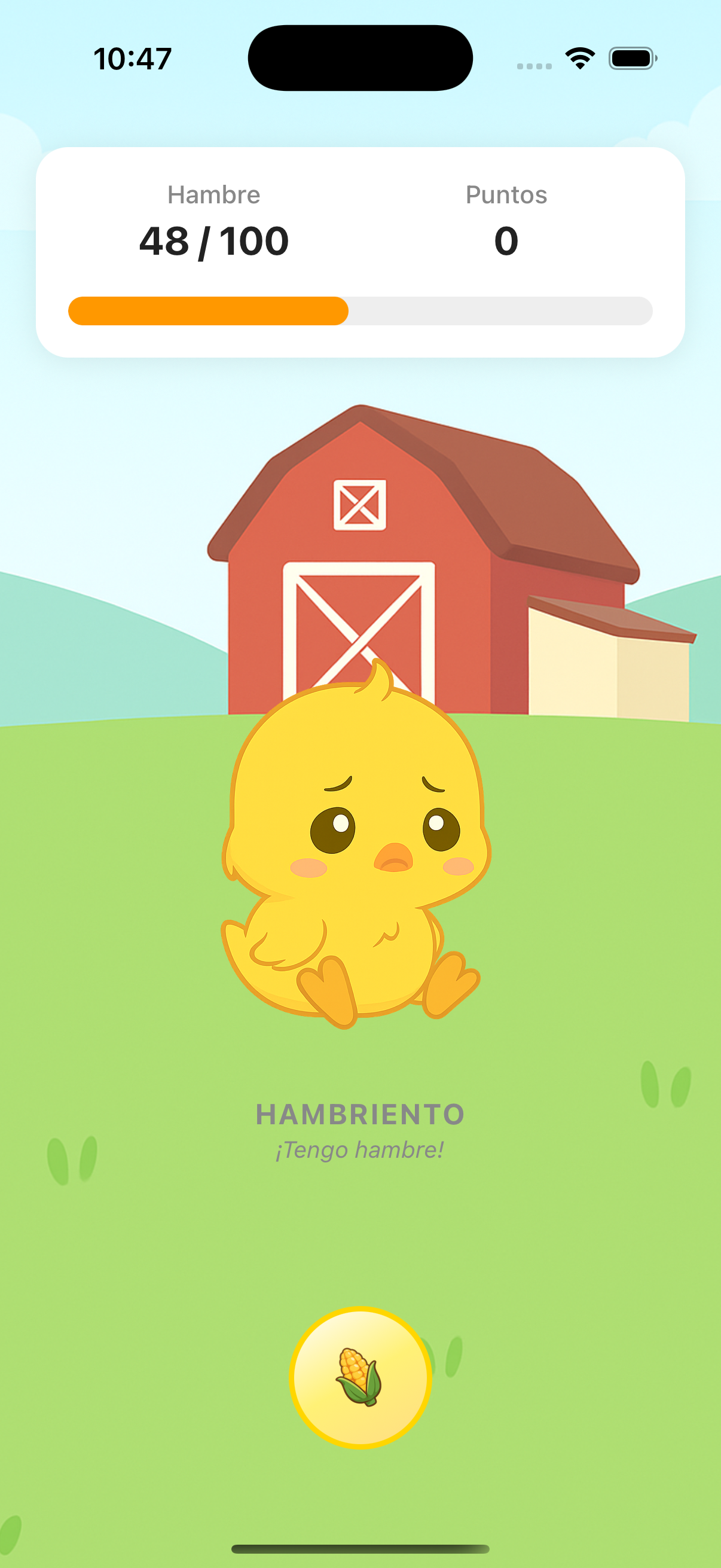 Mantén a tu pollito feliz vigilando su nivel de hambre y puntos.